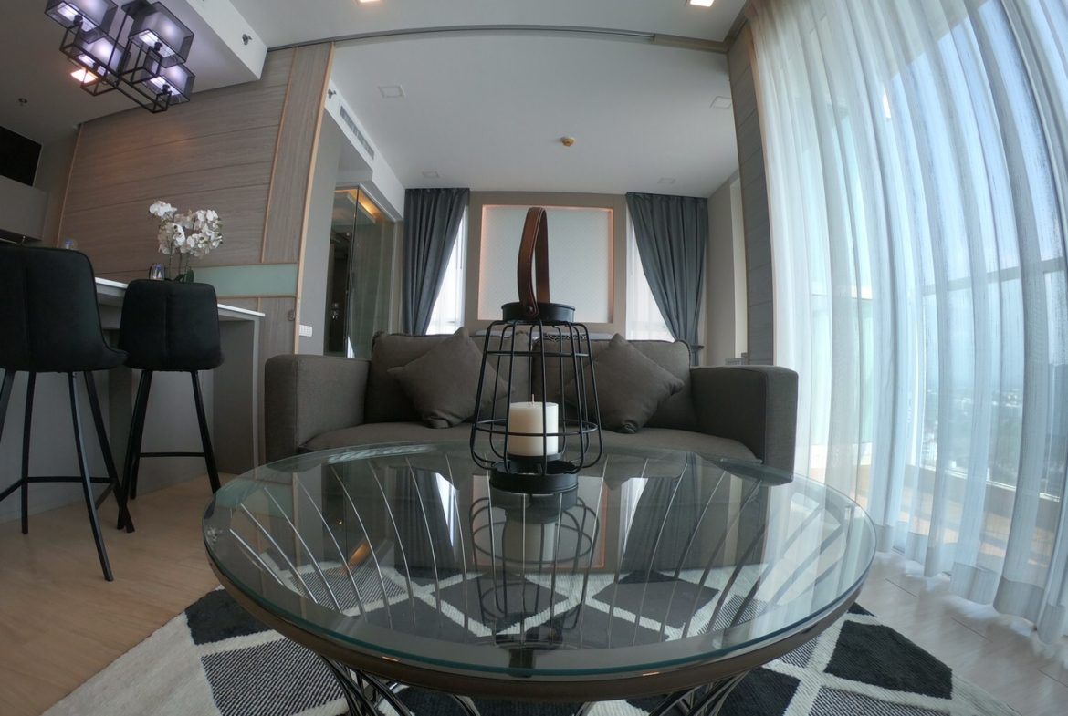 Beautiful 1-bedroom condo on the 24th floor with breathtaking Jomtien sea views. This 40.5 sqm unit is designed with a modern coastal style, featuring an open living area, stylish kitchen, and private balcony overlooking the ocean. Perfect for those seeking a serene beachfront lifestyle in one of Jomtien’s most prestigious developments.