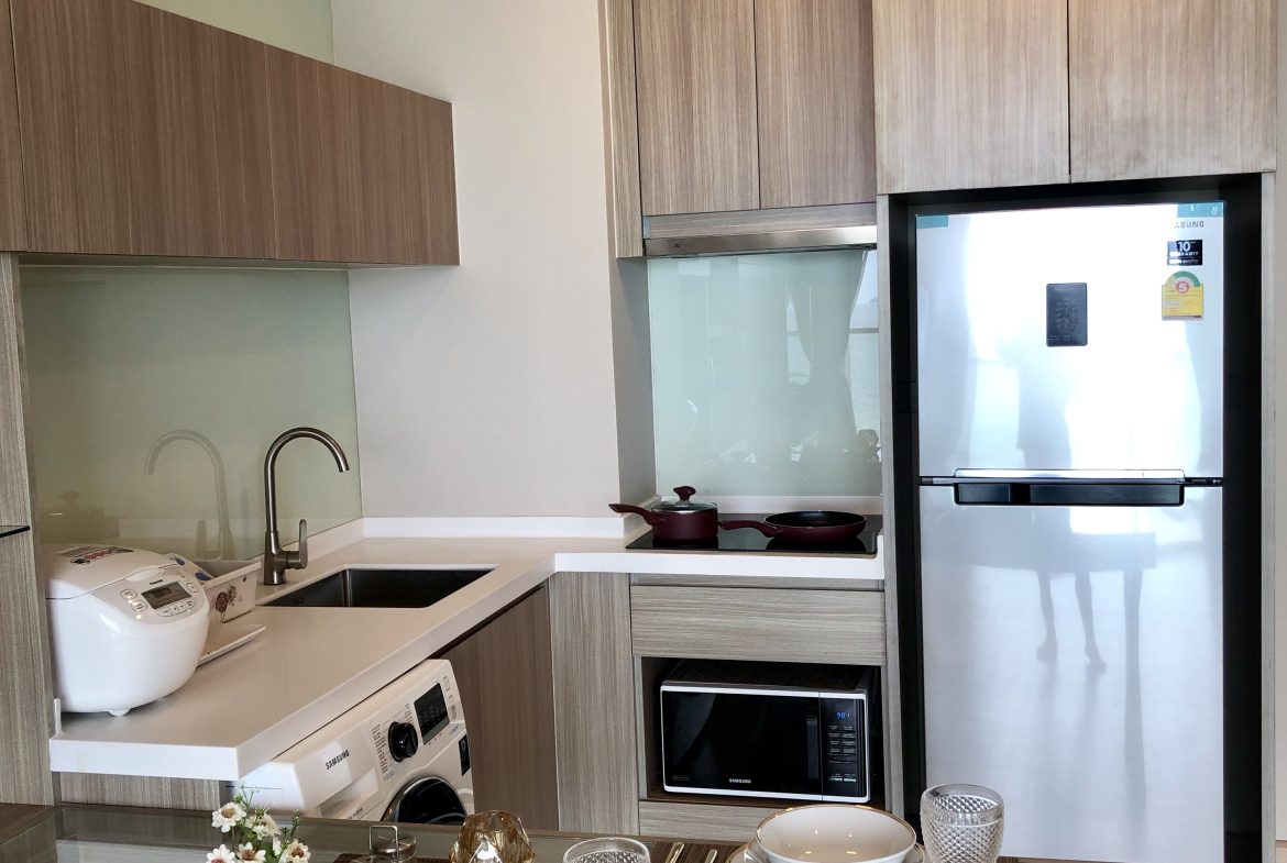 Stunning 1-bedroom condo on the 27th floor with panoramic Jomtien sea views. This 40.5 sqm unit features modern décor, an open-plan living area, a fully equipped kitchen, and a private balcony overlooking the ocean. Ideal for those seeking a luxurious beachfront lifestyle with world-class facilities.