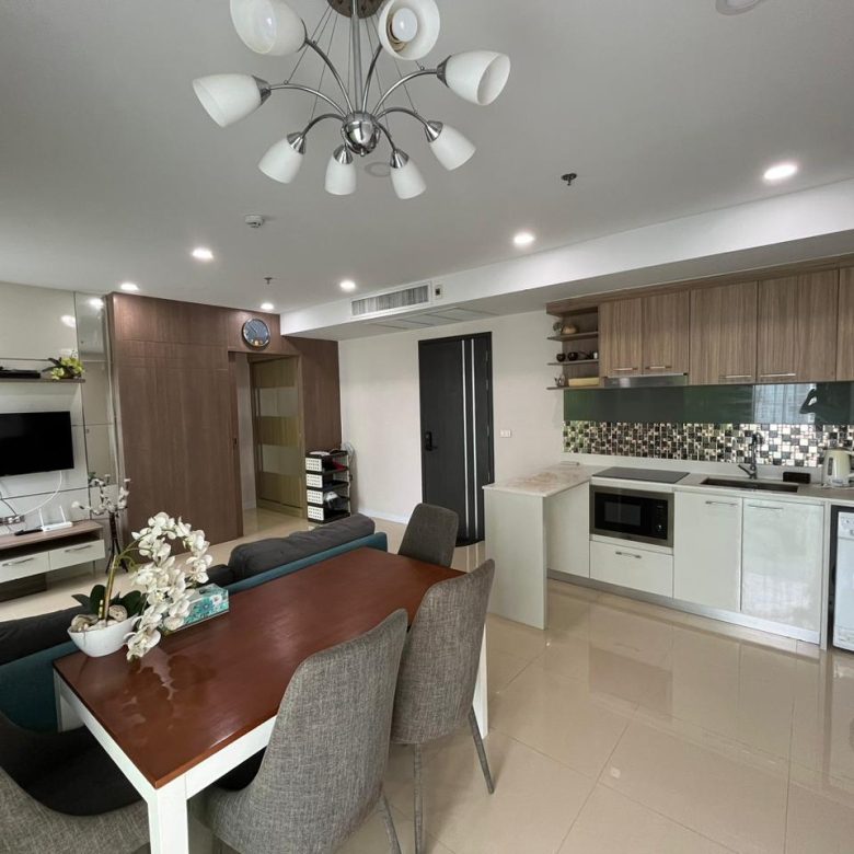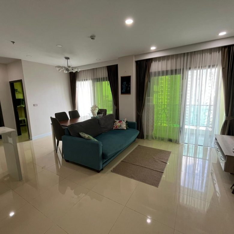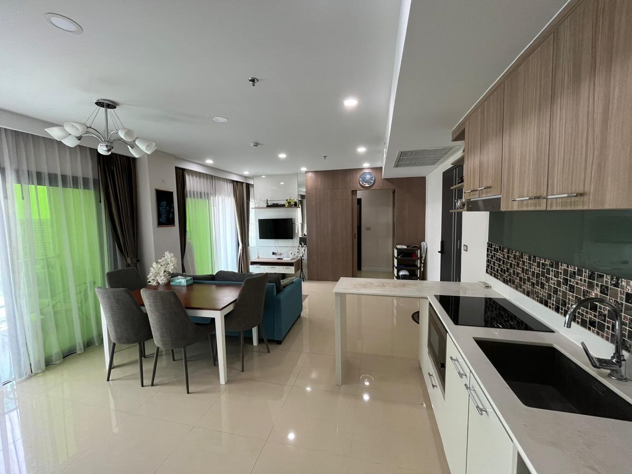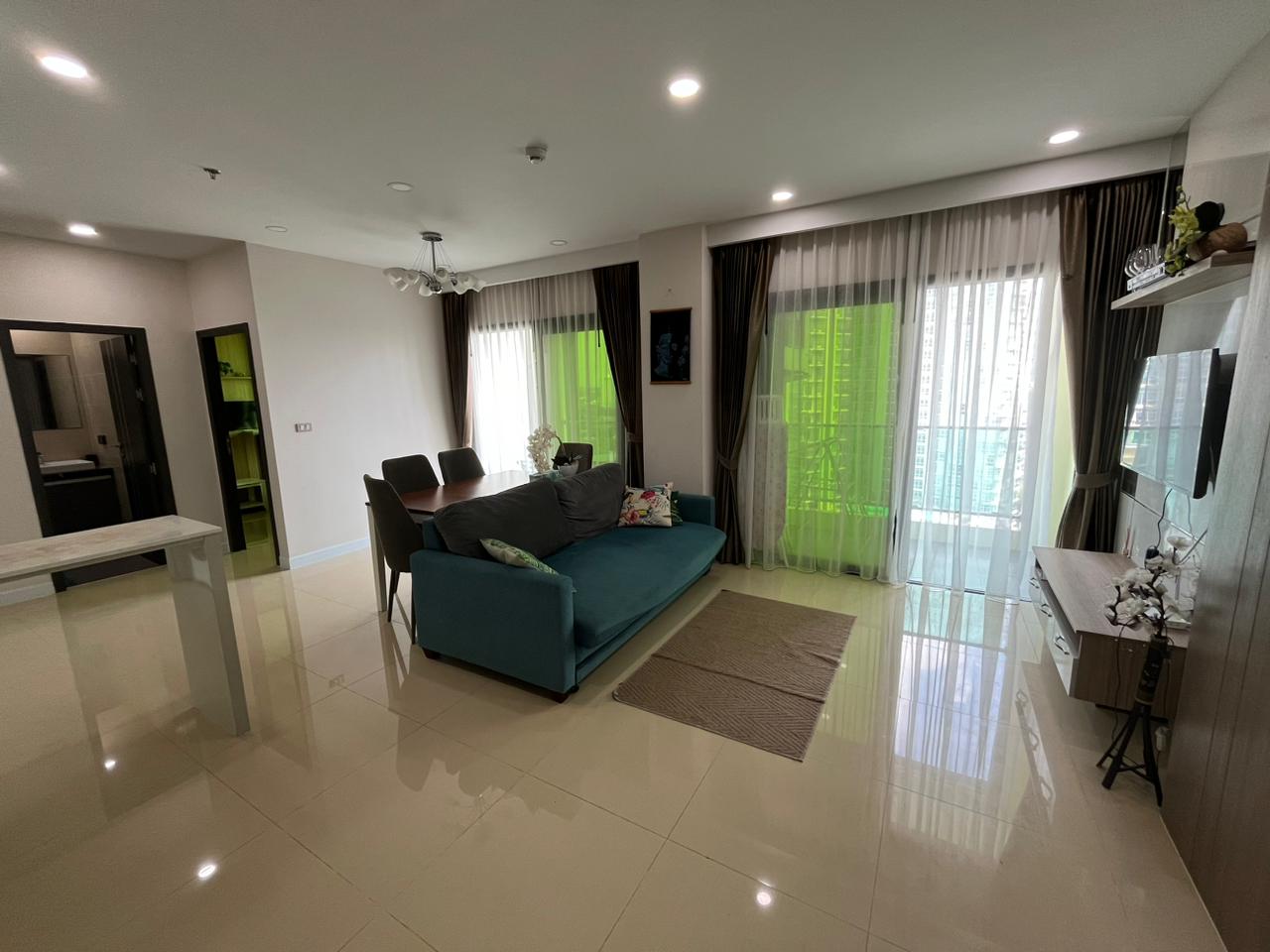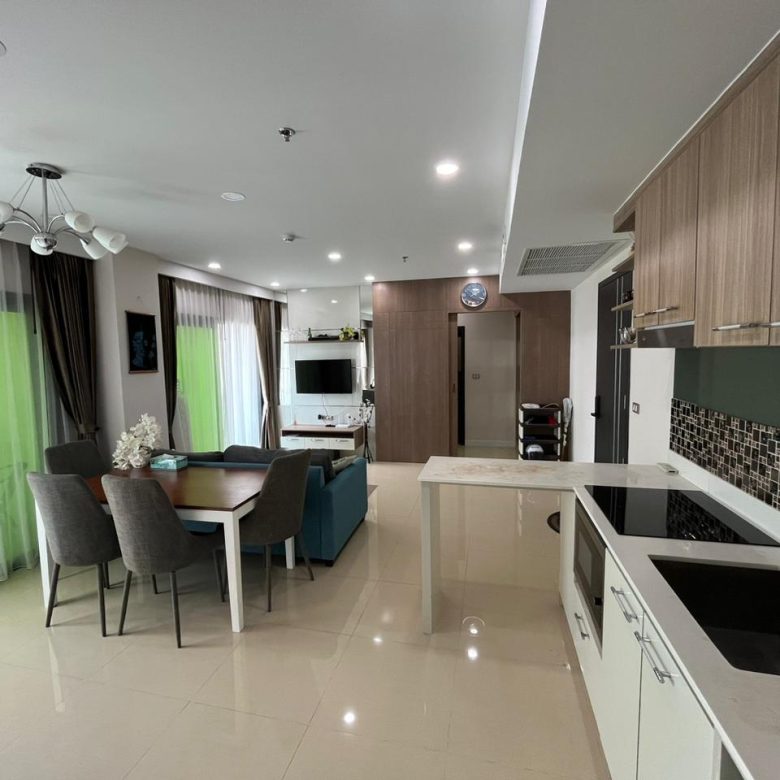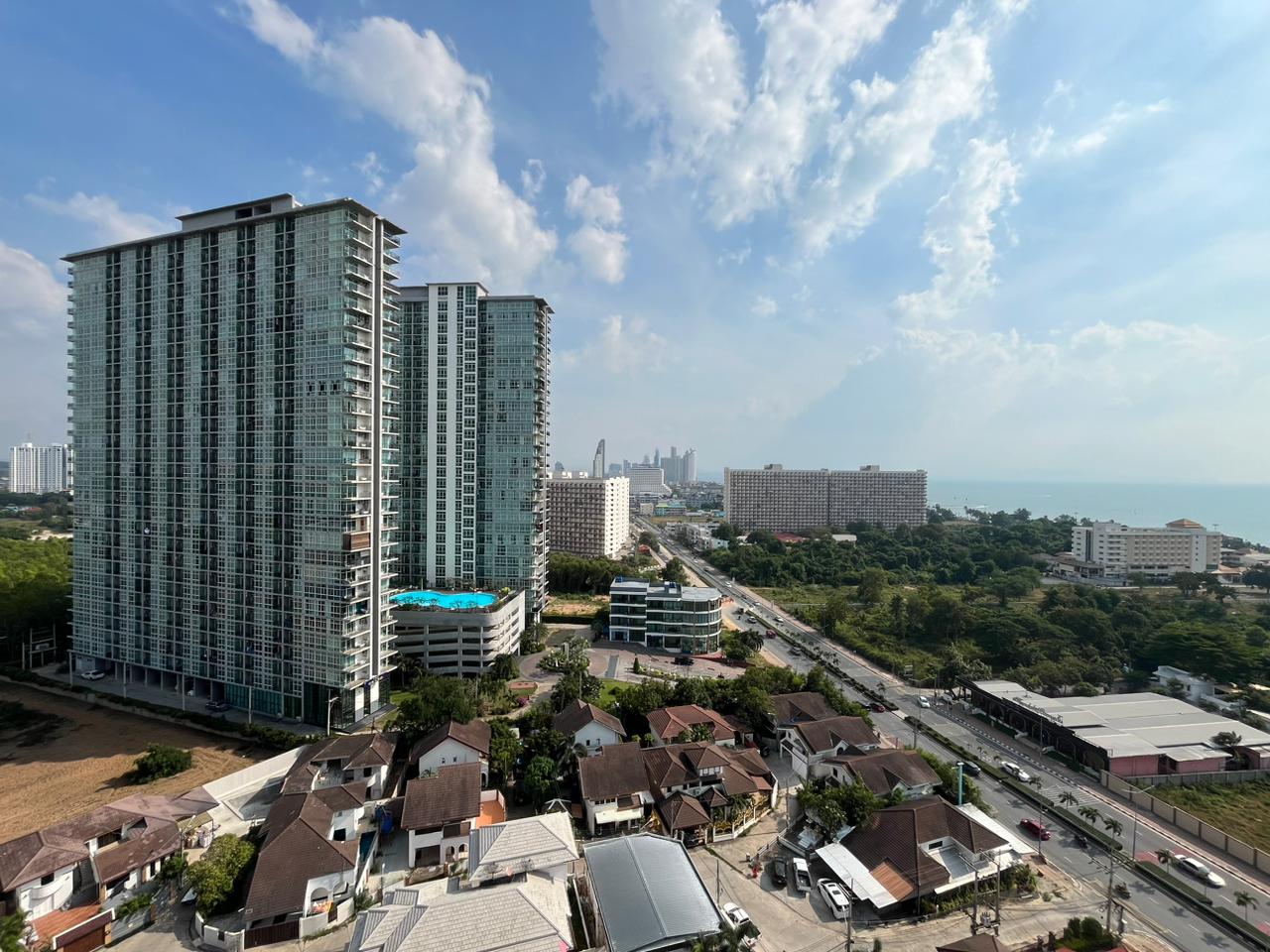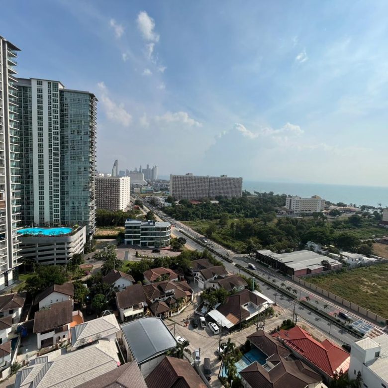 Spacious 2-bedroom condo on the 15th floor of Dusit Grand Condo View, offering a panoramic sea view. With 70 sqm of living space, this unit is ideal for families or investors seeking a high-rise residence in a prime Jomtien location.