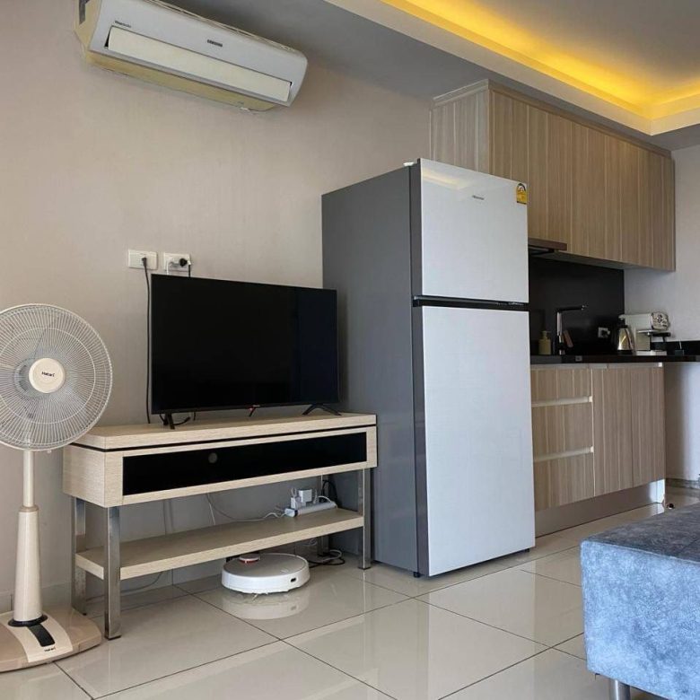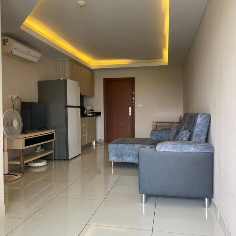 Spacious 1-bedroom condo on the 5th floor with a beautiful pool view. This 49 sqm unit offers a comfortable living space, modern furnishings, and a relaxing resort-style atmosphere. Perfect for personal living or investment, located just minutes from Jomtien Beach.