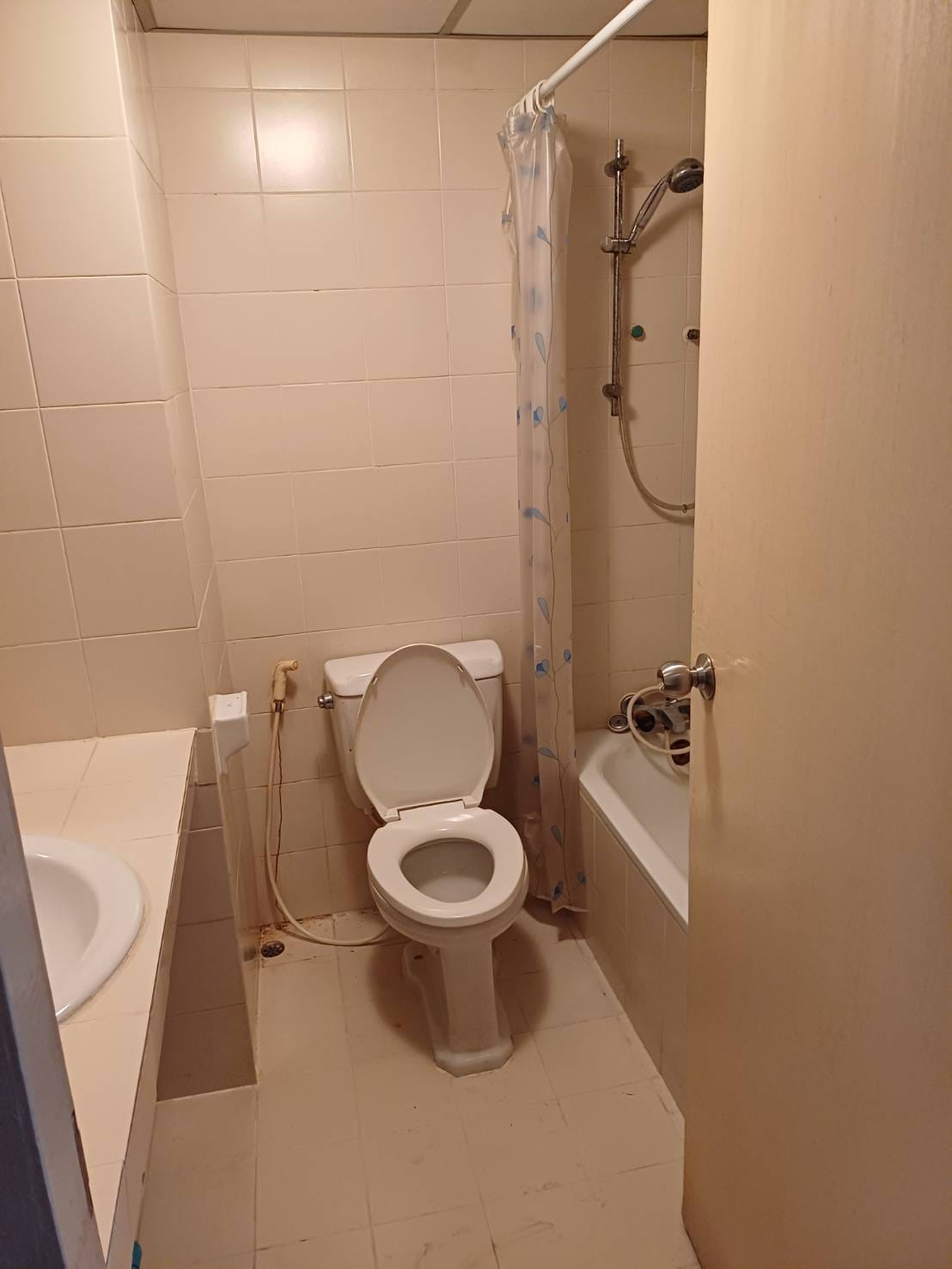 - Tiled bathroom with shower