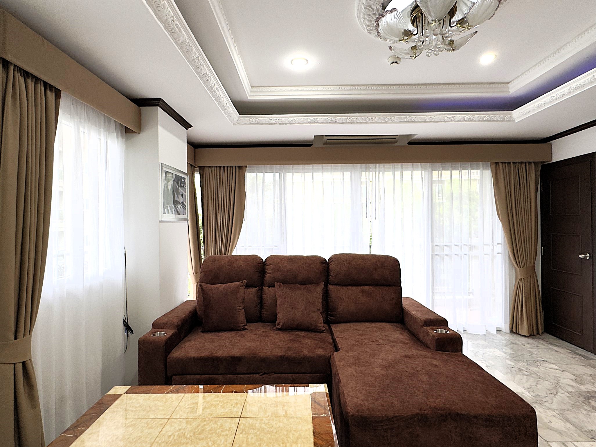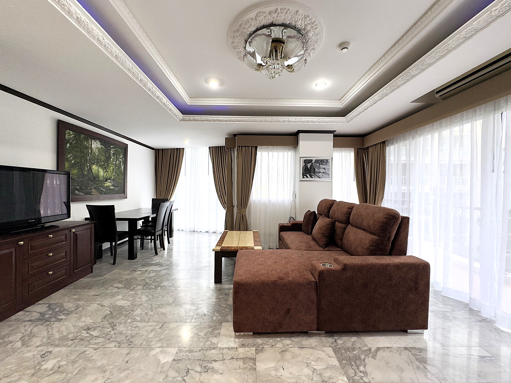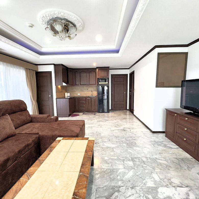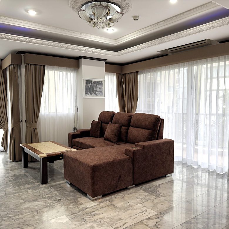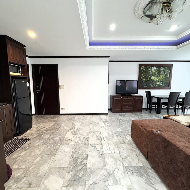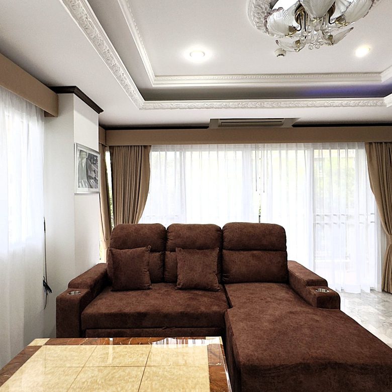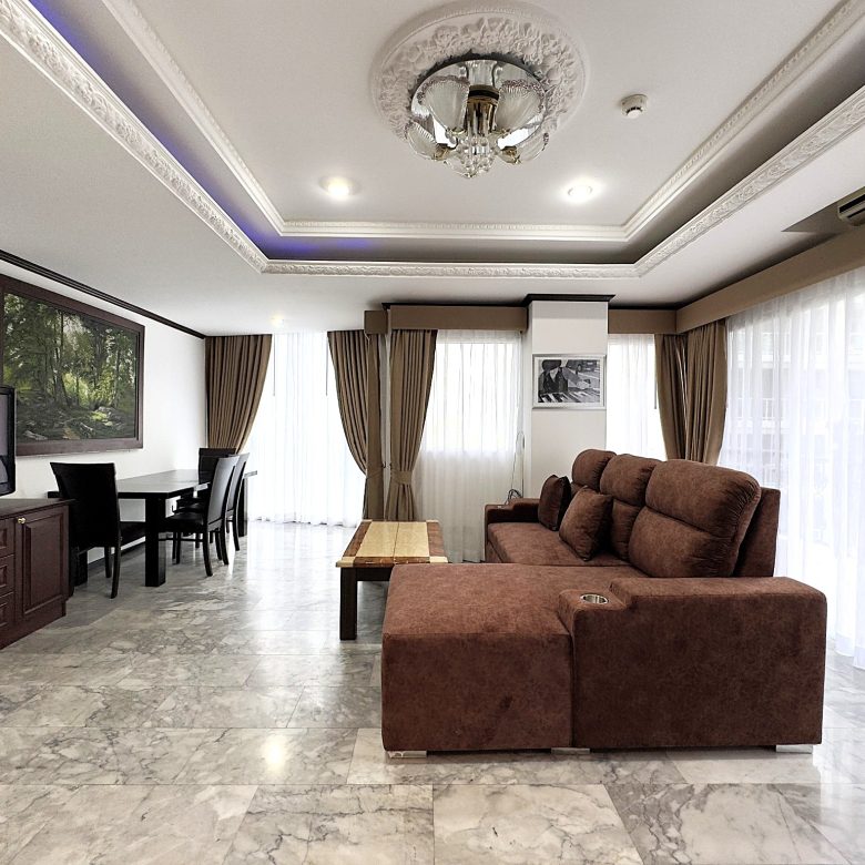 Spacious 1-bedroom condo on the 4th floor of Siam Oriental Twins, offering 82 sqm of living space with a sea view. Located in a peaceful Pratumnak neighborhood, just a short walk to the beach, shops, and restaurants — ideal for relaxed coastal living.