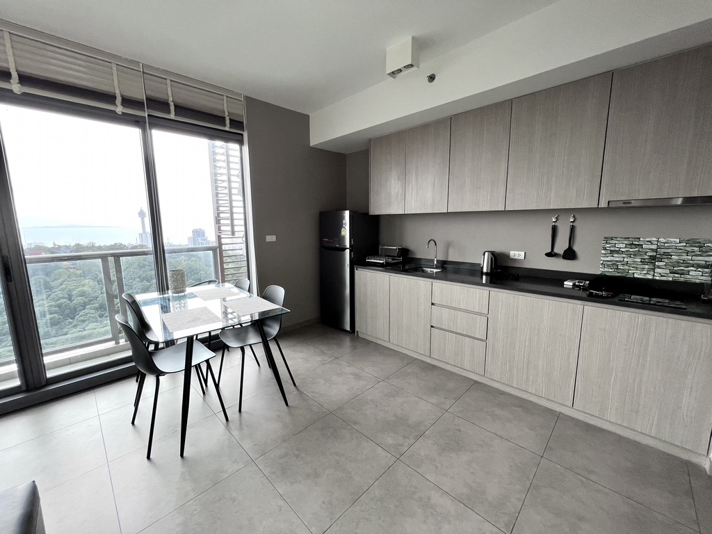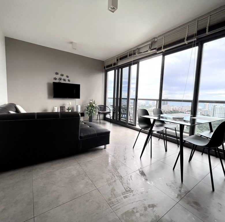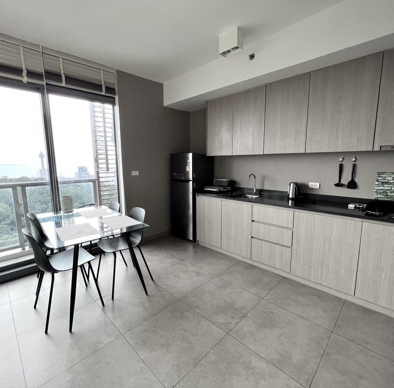 Two-bedroom condo on the 37th floor offering 62 sqm of well-designed living space with spectacular sea views. Foreign quota ownership. Priced at ฿6,478,700. Perfect for those wanting high-end living with resort-style shared facilities in Pratumnak.