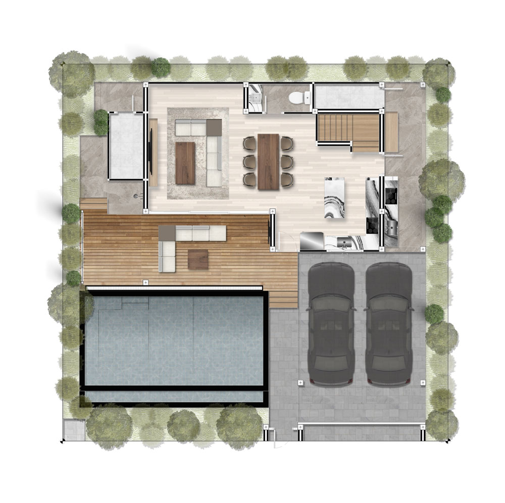 • Private luxury villas with pool and garden in every unit